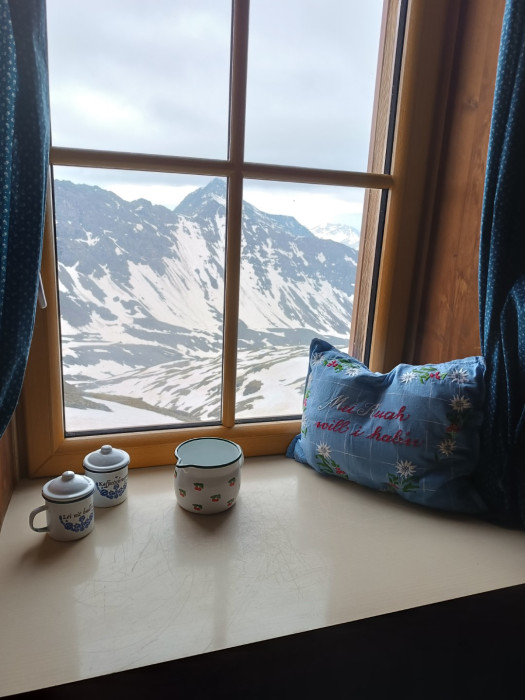 Es gibt auf der Hütte zwei Waschräume (nur Kaltwasser) und keine Duschen. Da wir die Seilbahn neben der Hütte nicht benutzen können, ist kein Gepäcktransport möglich.