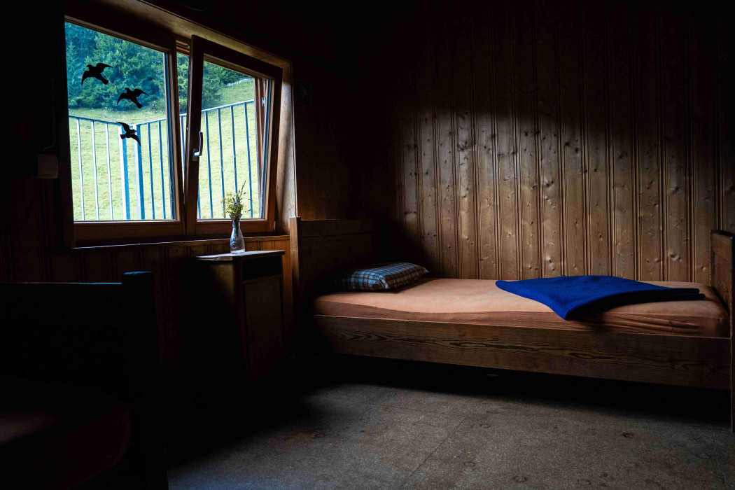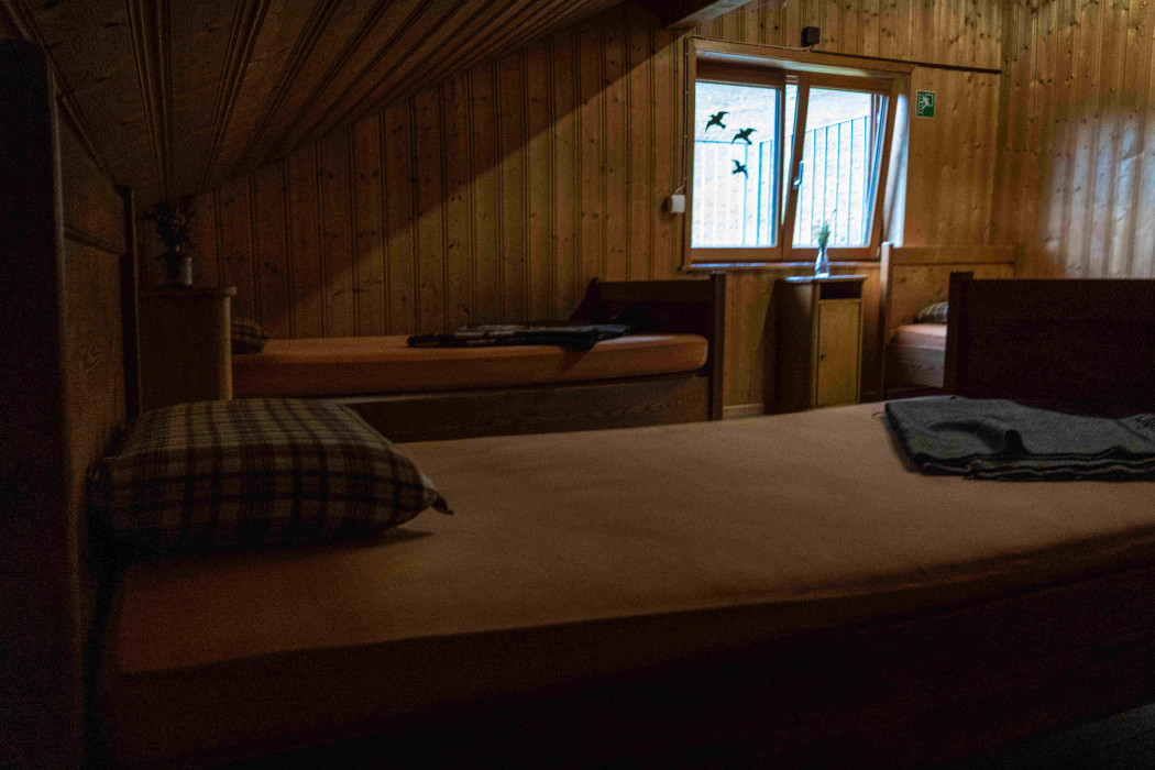 Neben den drei 10-Bett-Lagern kann ebenfalls in zwei 4-Bett-Zimmern oder zwei 2-Bett-Zimmer übernachtet werden.
